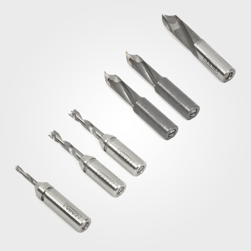 Type WN-31 – Non-through, monolithic drill bits with extended durability, designed for precision machining of wood and composite panels (chipboard, laminated panels, MDF, etc.). These drill bits feature a HM (carbide) core that significantly increases the rigidity of the cutting section, ensuring longer life and stable performance. A specially engineered cutting geometry and high manufacturing precision provide superior cutting efficiency and edge durability.